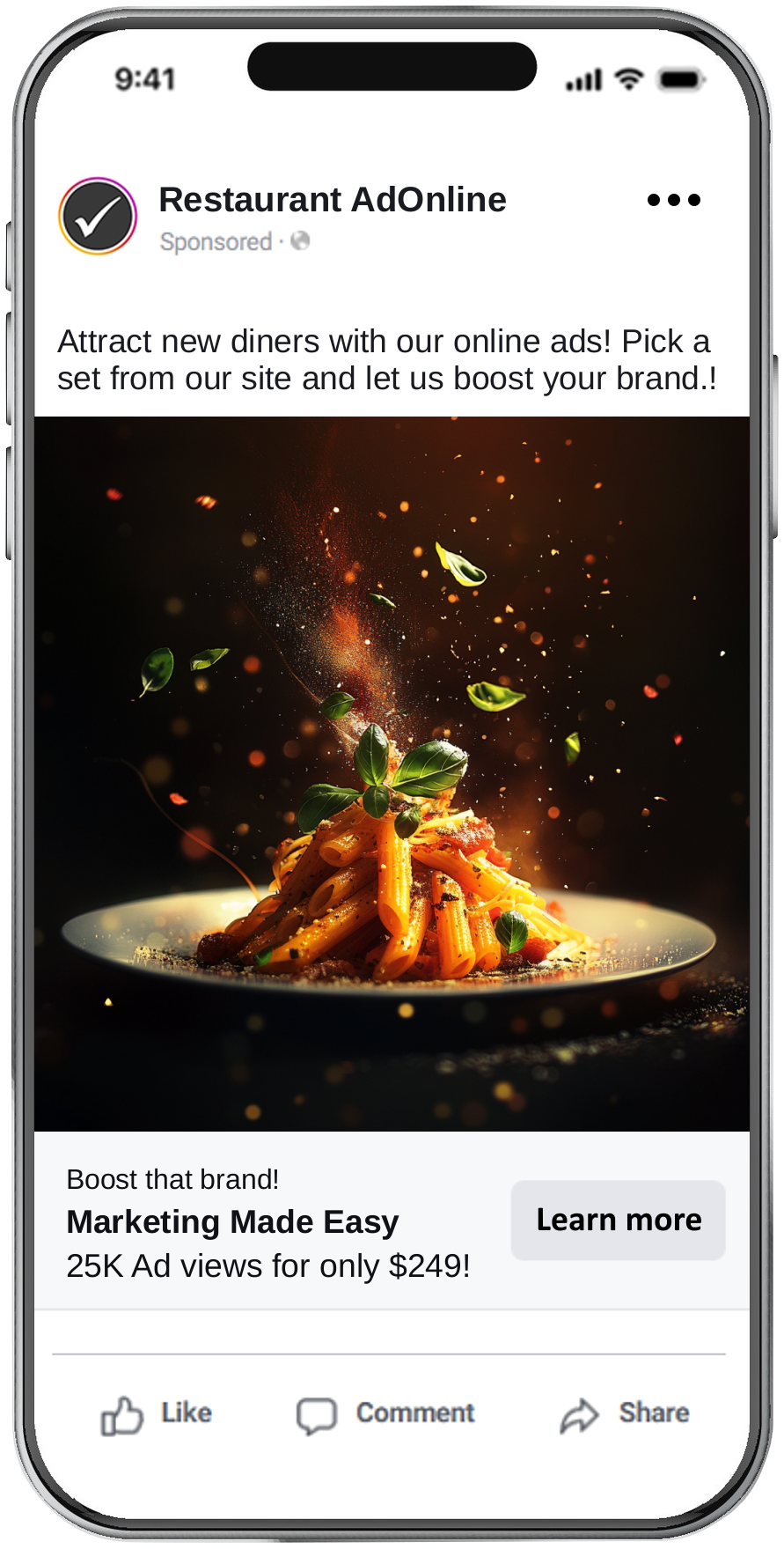 We'll display them on Facebook and Instagram, close to your restaurant.